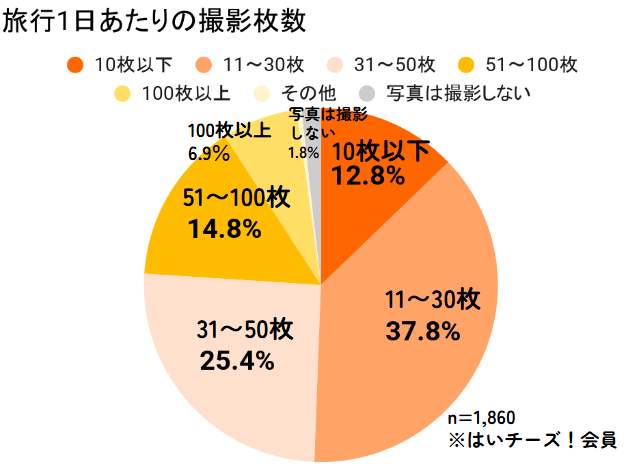 ■撮影枚数は「11~30枚」が最多:「11~30枚」に次いで「31~50枚」が25%。10枚以下は12%に留まる。
